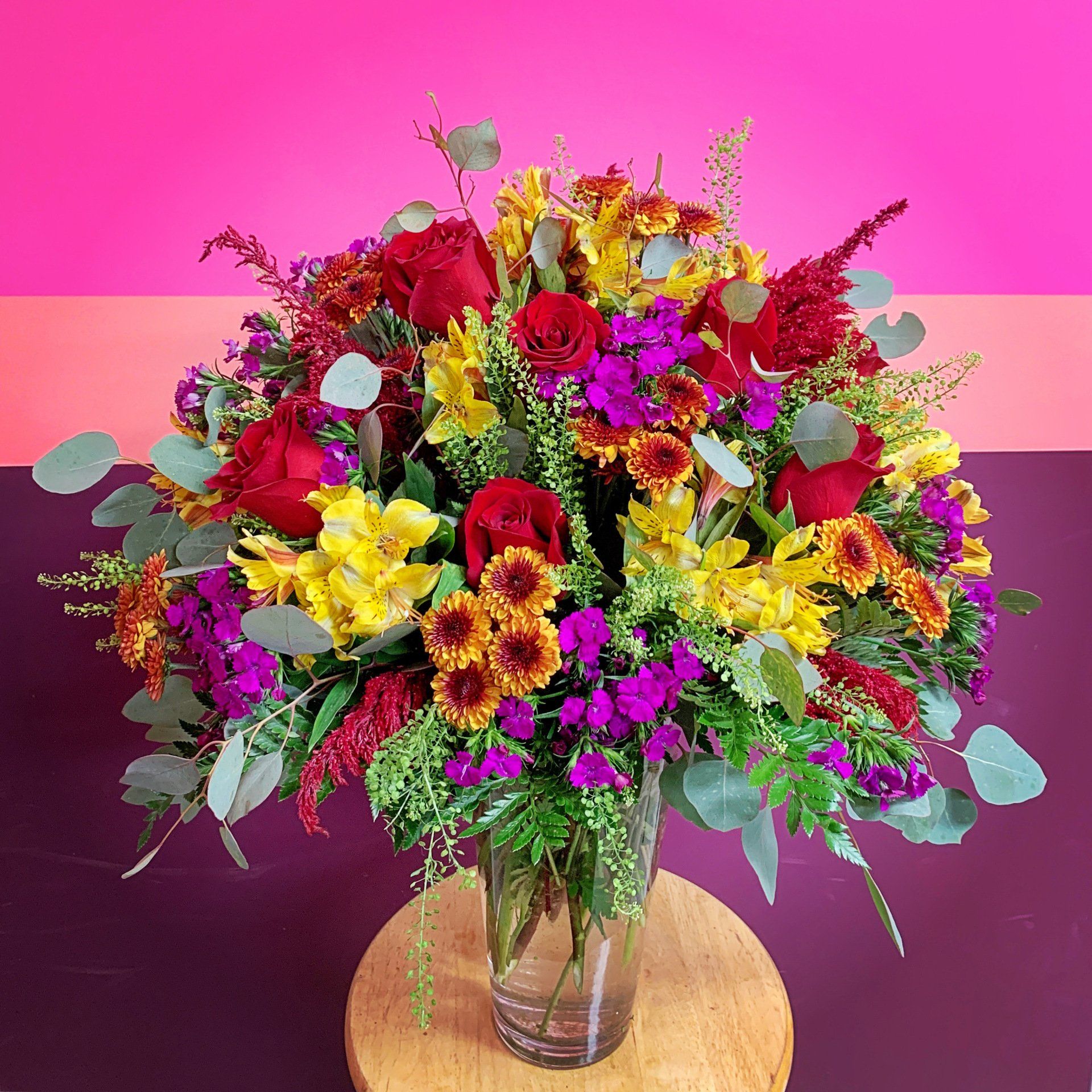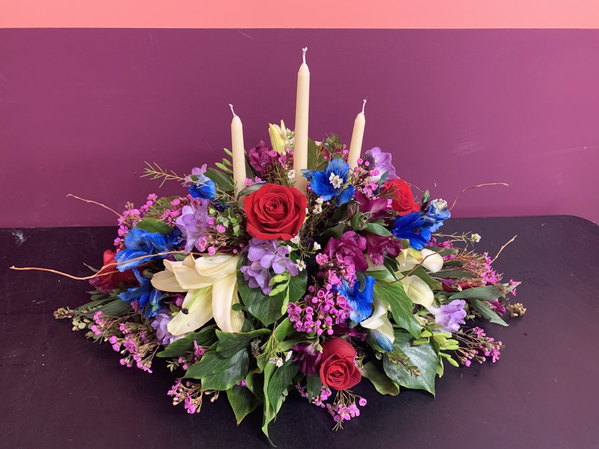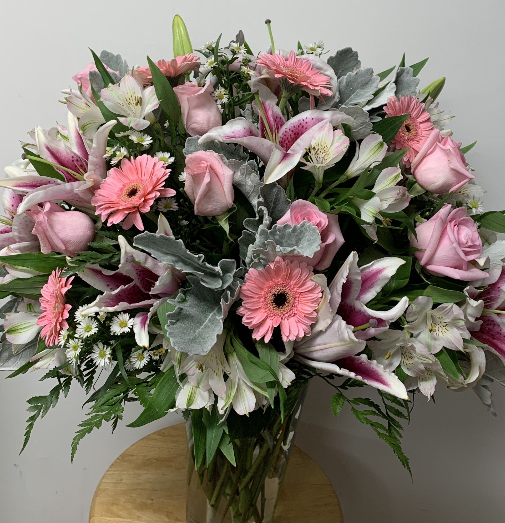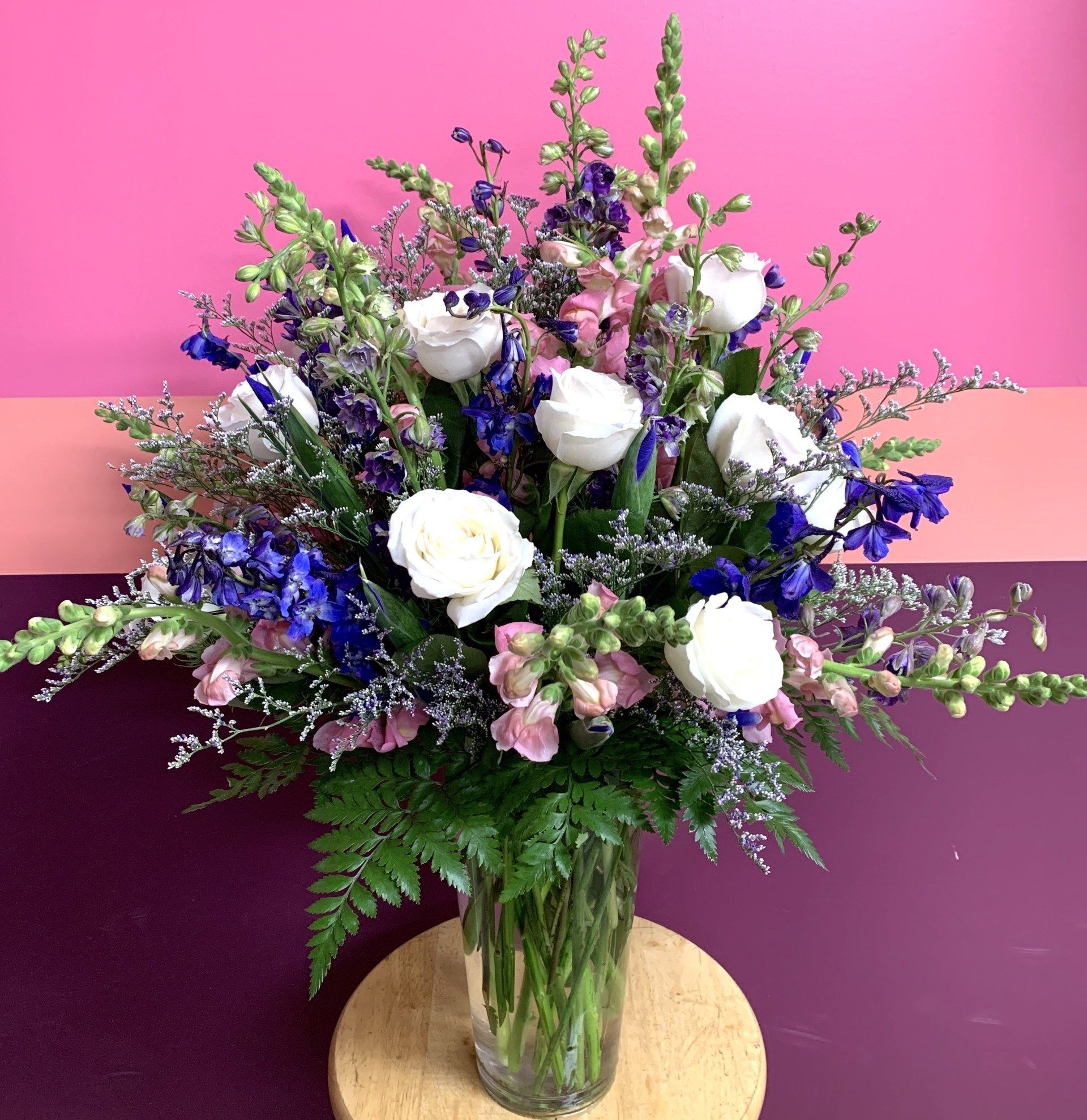 All of our arrangements are custom made for each individual order. Our photo gallery demonstrates our style and variety. Starting price is $50.00 for an arrangement in a 5x5 glass cube or a tall vase measuring 8" in height. We also offer larger arrangements to accommodate larger budgets.